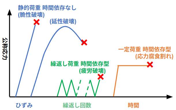 • 疲労・応力腐食・クリープは代表的な時間依存型破壊